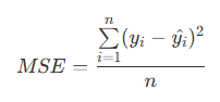 MSE = \frac{\sum\limits_{i=1}^n (y_i - \hat{y_i})^2}{n}