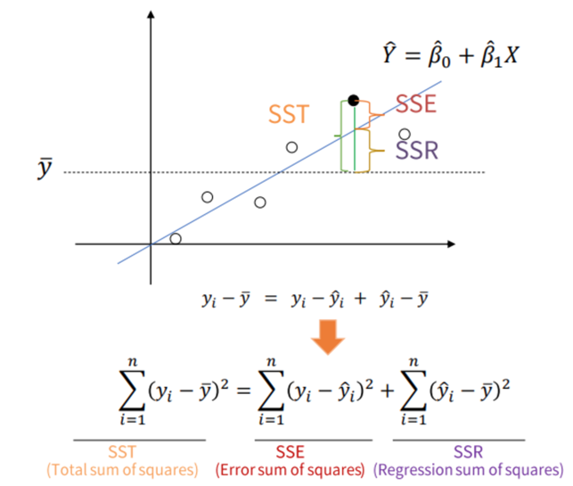 - SSR(Sum of Squre Regression): 높으면 높을수록 좋음